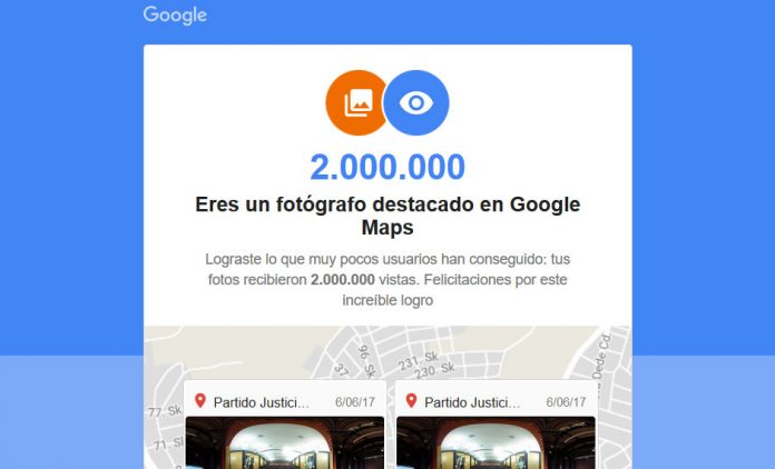 Hoy recibí este mensaje en mi cuenta de google maps, gran parte de este resultado se debe a la cantidad de fotografías en 360 grados que fuí subiendo estos ultimos años.