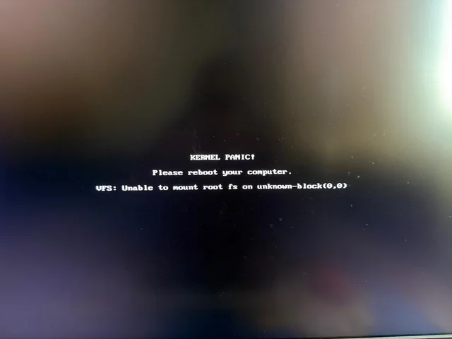 Este mensaje es un <strong»>kernel panic típico cuando Linux no puede montar la partición raíz (/) durante el arranque. En otras palabras: el kernel arrancó, pero no encontró (o no pudo leer) el disco/partición donde está el sistema.