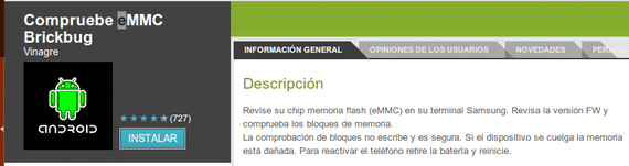 Lo primero que deberemos hacer para saber si nuestro chip es uno de los afectados por el problema de la muerte súbita, será descargar desde la propia tienda de aplicaciones de Android, (Play Store), la aplicación gratuita eMMC Brickbug.